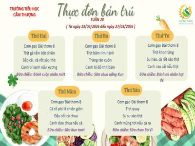 (Tiểu học Cẩm Thượng) THỰC ĐƠN BÁN TRÚ TUẦN 28, NĂM HỌC 2025-2026 (Từ ngày 23/3/2026 đến ngày 27/3/2026)