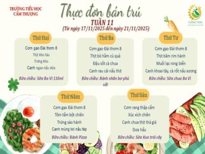 (Tiểu học Cẩm Thượng) THỰC ĐƠN BÁN TRÚ TUẦN 11 ( Từ ngày 17/11/2025 đến ngày 21/11/2025)