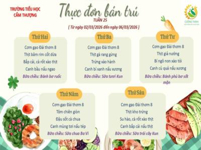 (Tiểu học Cẩm Thượng) THỰC ĐƠN BÁN TRÚ TUẦN 25, NĂM HỌC 2025-2026 (Từ ngày 2/3/2026 đến ngày 6/3/2026)