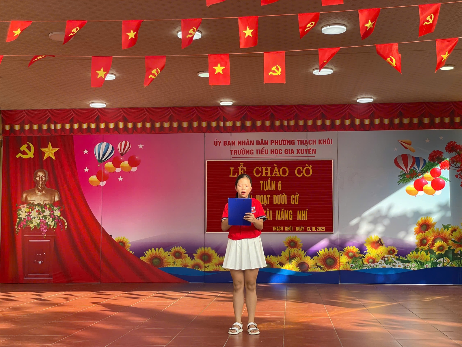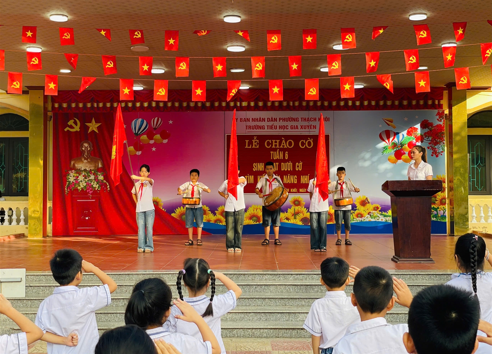 LIÊN ĐỘI TRƯỜNG TIỂU HỌC GIA XUYÊN TỔ CHỨC HOẠT ĐỘNG CHÀO CỜ TUẦN 6