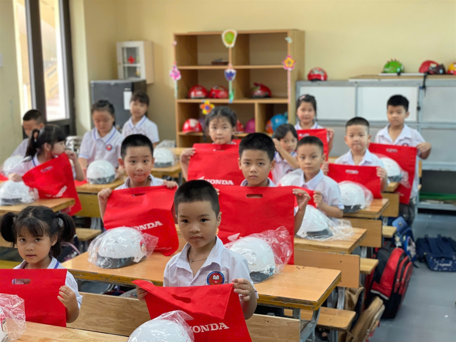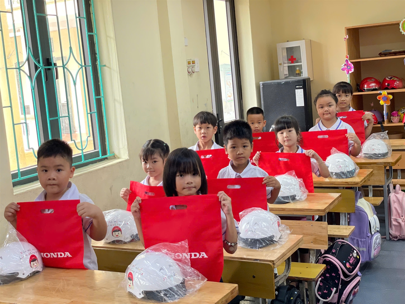 Bên cạnh việc được nhận mũ, học sinh còn được hướng dẫn cách chọn và đội mũ bảo hiểm đúng chuẩn cũng như được hướng dẫn các kiến thức và kỹ năng tham gia giao thông an toàn.