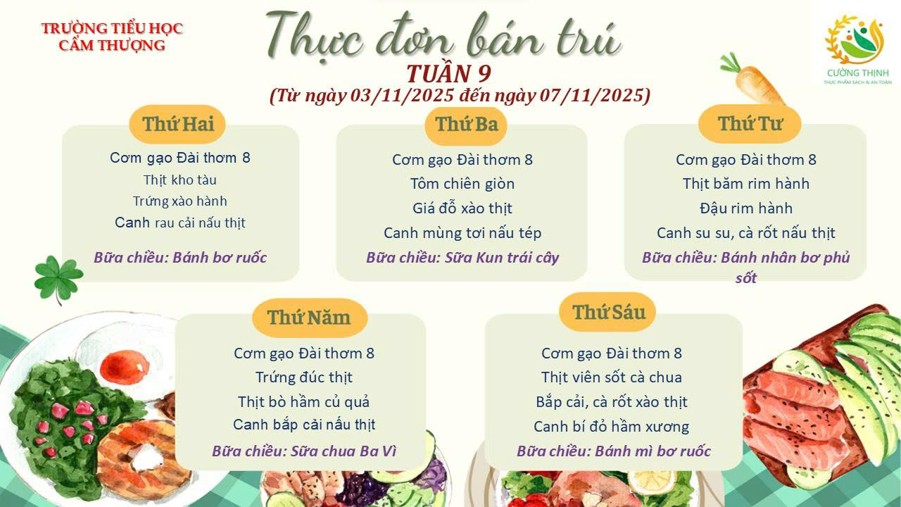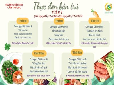 (Tiểu học Cẩm Thượng) THỰC ĐƠN BÁN TRÚ TUẦN 9, NĂM HỌC 2025-2026 (Từ n ...