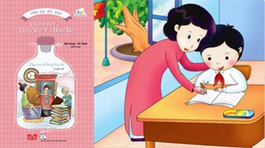 Hòa trong không khí hân hoan hướng về Ngày nhà giáo Việt nam 20/11, ngày mà cả nước tri ân, tôn vinh sự cống hiến miệt mài của các thầy, cô giáo, trong buổi giới thiệu sách tháng 11 hôm nay, thư viện xin trân trọng gửi tới quý thầy cô và các bạn học sinh cuốn sách “Chuyện về thầy cô và bạn bè” của tác giả Mai Hương và Chí Thành, được nhà xuất bản Thế giới và công ty Văn hóa Đinh Tị ấn hành năm 2020. Sách dày 179 trang giấy, khổ 13×20,5cm. Ấn tượng đầu tiên khi các bạn cầm trên tay là một màu hồng nhã nhặn với hình trang trí trung tâm là một chiếc bình thủy tinh chứa đựng bao ước mơ, hoài bão của học trò mà phía sau đó là hình ảnh của người thầy đáng kính. Cuốn sách có trang bìa được trang trí rất hài hòa, giản đơn như vậy nhưng lại mang đầy ý nghĩa
