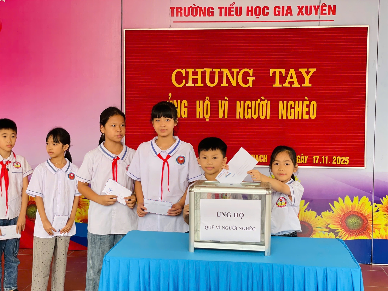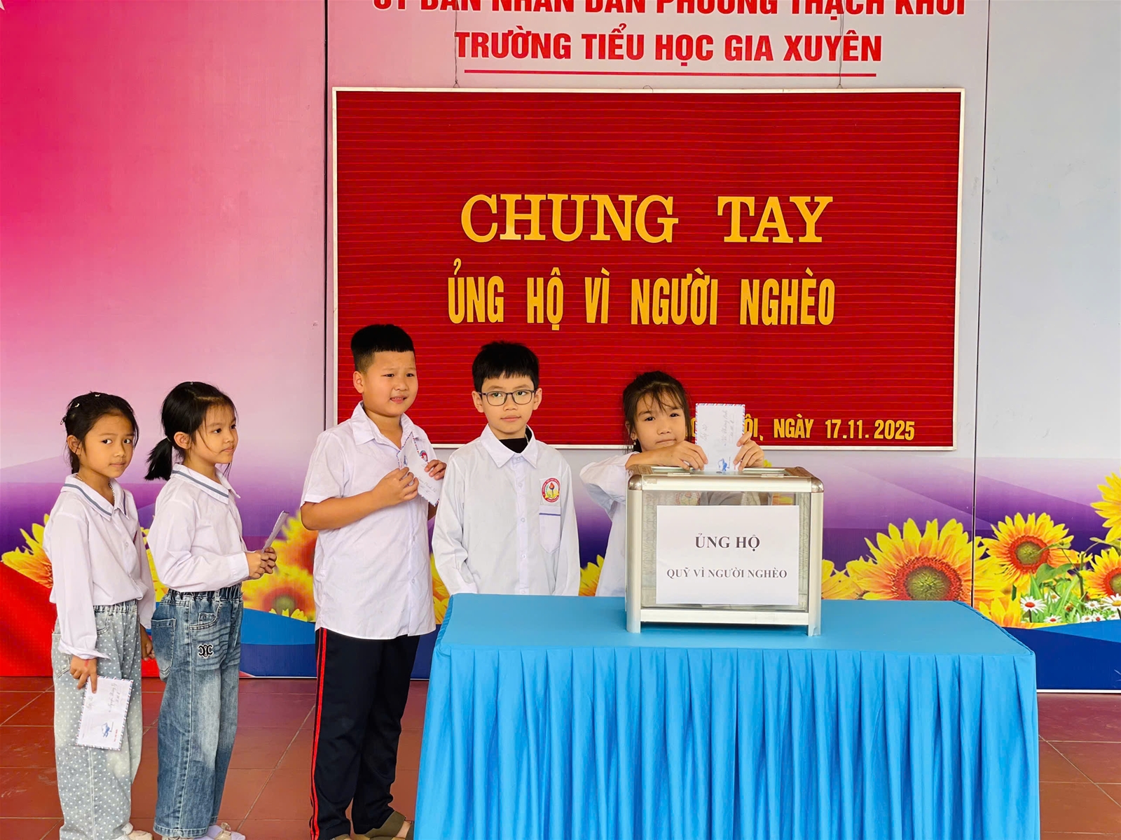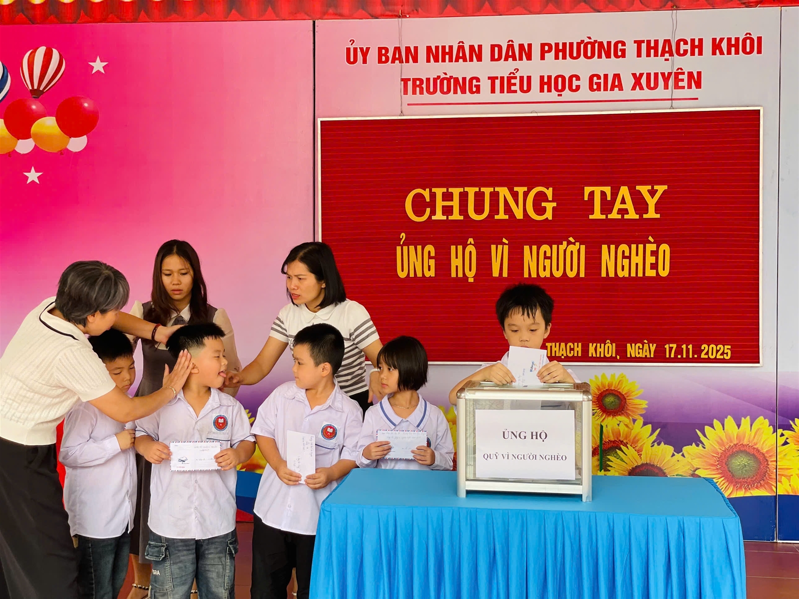 Trường Tiểu học Gia Xuyên xin trân trọng cảm ơn sự chung tay của toàn thể cán bộ, giáo viên, nhân viên và các em học sinh. Những đóng góp của quý thầy cô và các em sẽ góp phần giúp đỡ những mảnh đời còn nhiều khó khăn, thắp lên niềm tin và hy vọng cho cộng đồng.