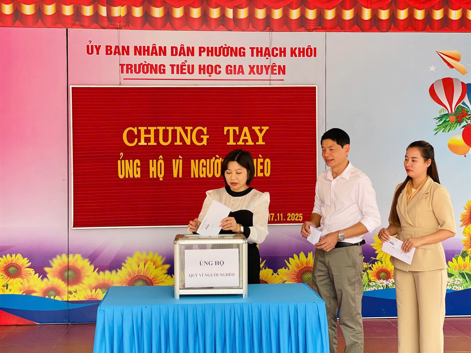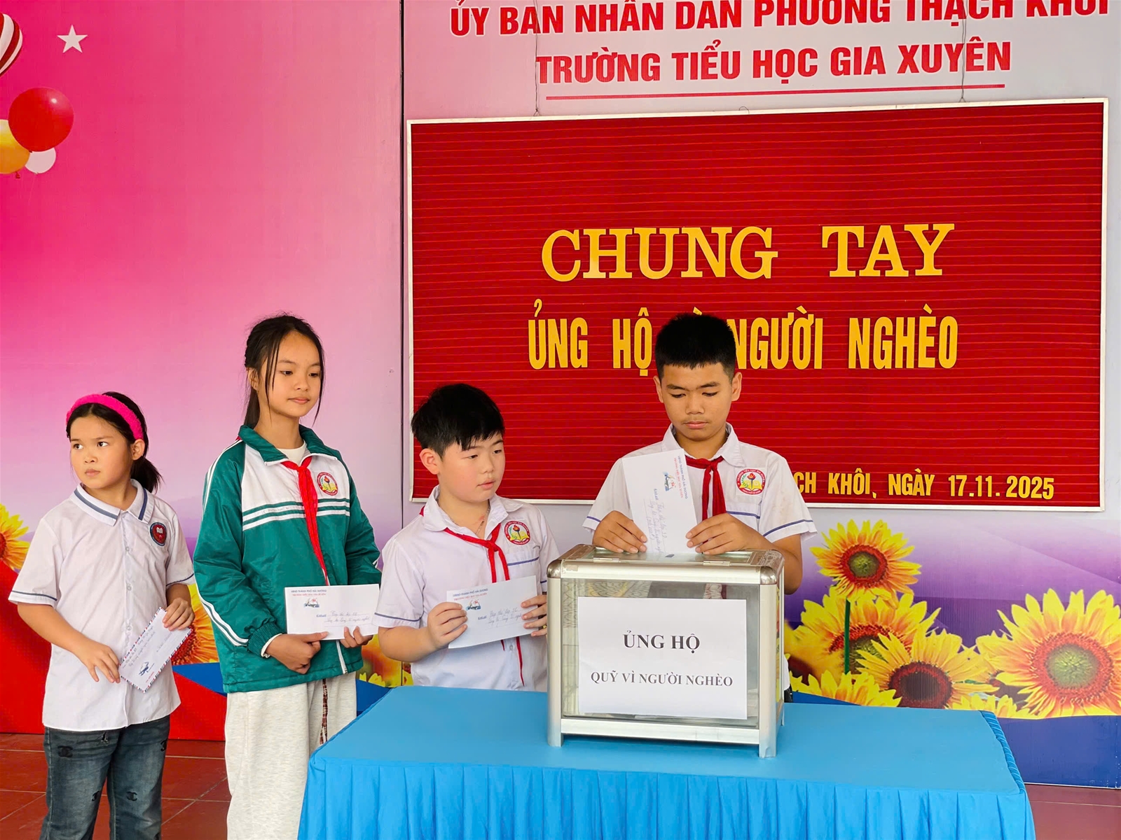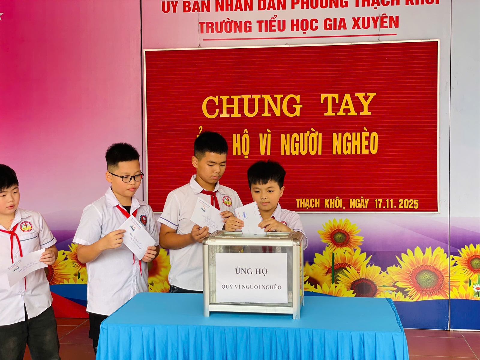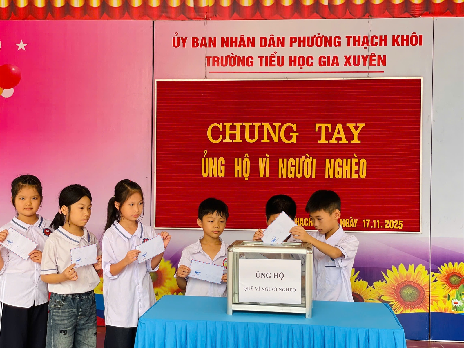 Trường Tiểu học Gia Xuyên xin trân trọng cảm ơn sự chung tay của toàn thể cán bộ, giáo viên, nhân viên và các em học sinh. Những đóng góp của quý thầy cô và các em sẽ góp phần giúp đỡ những mảnh đời còn nhiều khó khăn, thắp lên niềm tin và hy vọng cho cộng đồng.