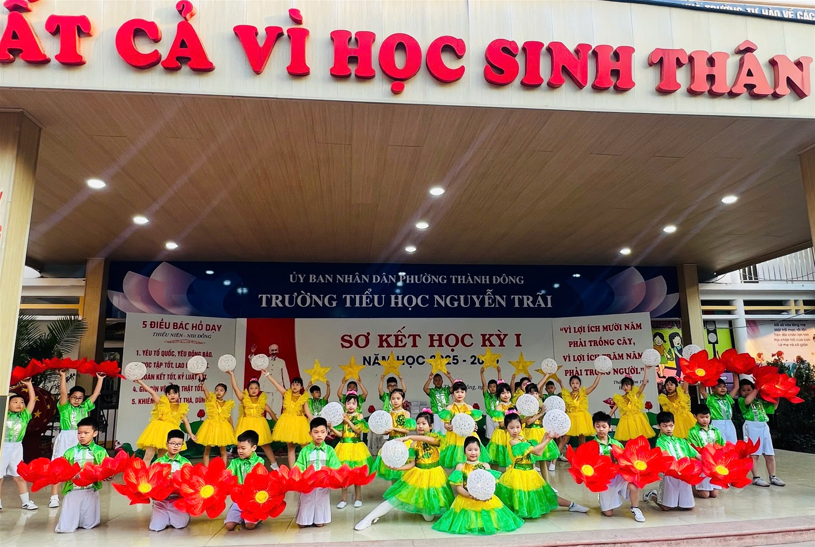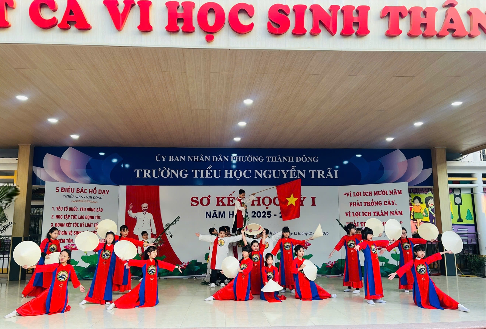 🌺 Trong không khí rộn ràng những ngày cuối học kỳ, Trường Tiểu học Nguyễn Trãi đã long trọng tổ chức Lễ sơ kết học kỳ I. Đây là dịp để thầy và trò nhà trường cùng nhìn lại một chặng đường học tập và rèn luyện đầy cố gắng. Chương trình mở đầu bằng các tiết mục múa “Made in Việt Nam” và “Việt Nam ngày mới” tươi vui, giàu cảm xúc, lan tỏa niềm tự hào và tạo nên bầu không khí phấn khởi, ấm áp cho toàn trường.
