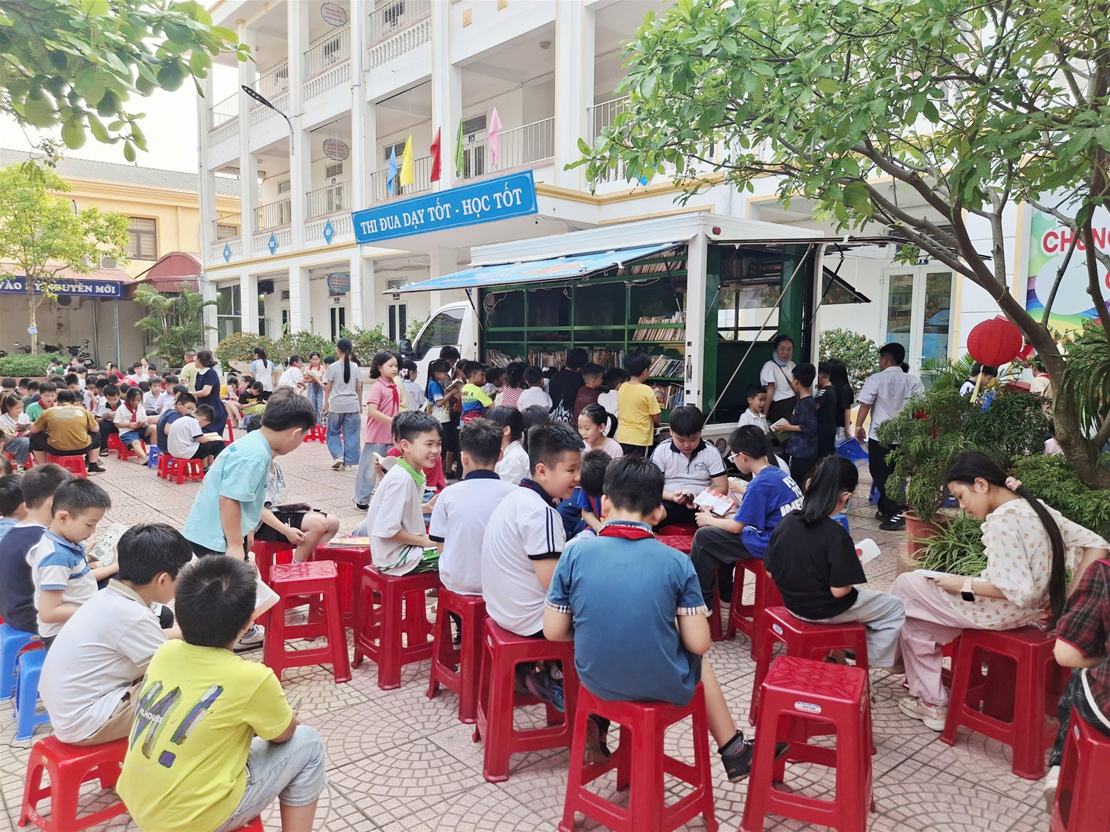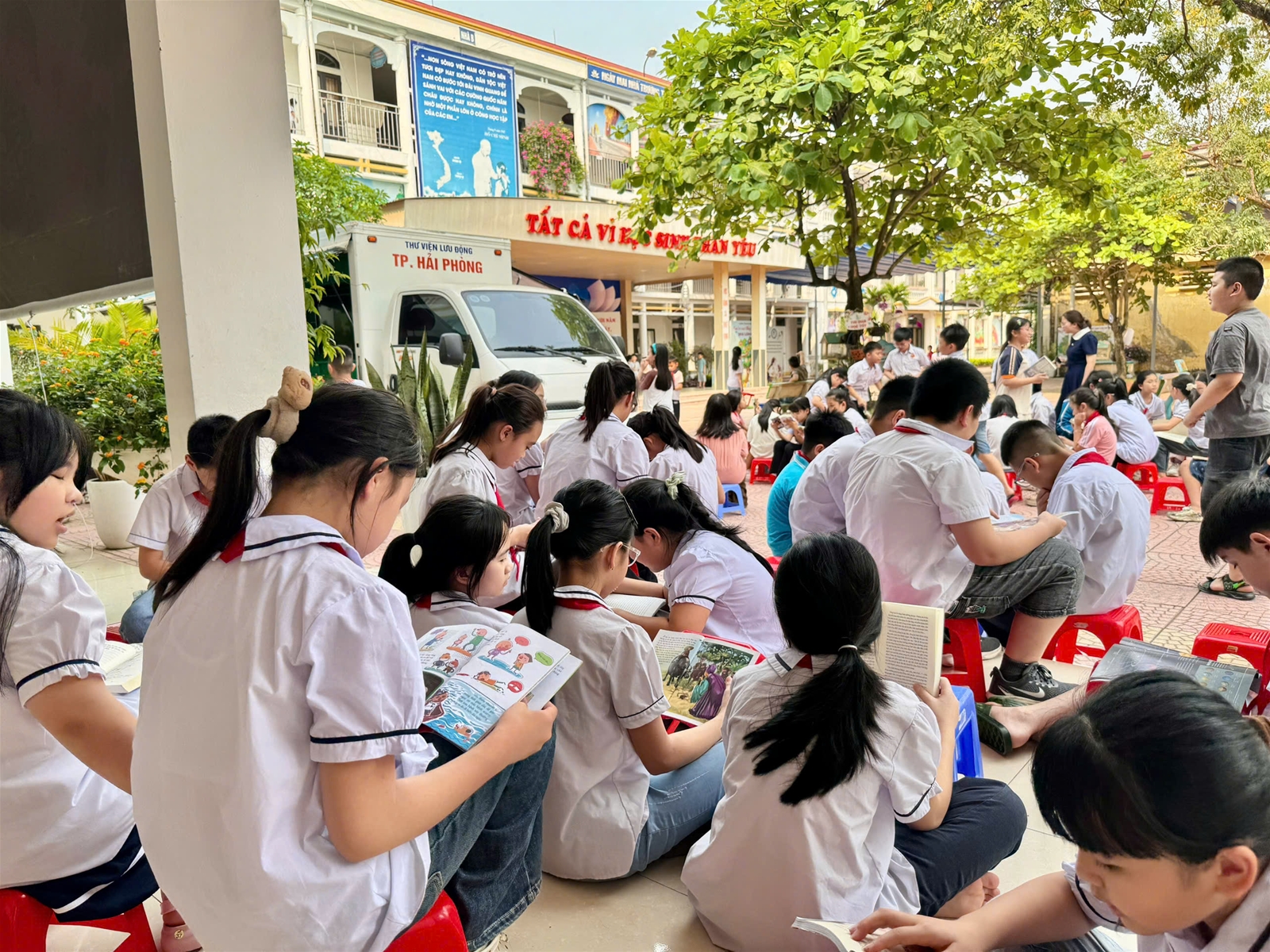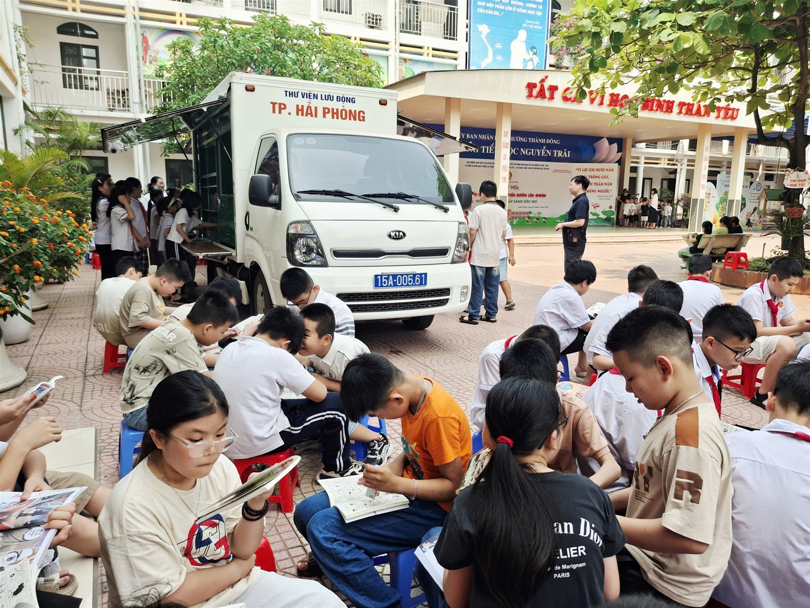 Nằm trong chuỗi các hoạt động Hưởng ứng Ngày Sách và Văn hoá đọc Việt Nam. Chiều ngày 08/4/2026, sân trường Tiểu học Nguyễn Trãi rộn ràng hơn bao giờ hết khi xe sách lưu động từ Thư viện thành phố Hải Phòng ghé thăm. Hàng trăm đầu sách, truyện đầy màu sắc đã được bày biện, mời gọi các em học sinh khám phá, chạm vào từng câu chữ, từng tri thức mới.
